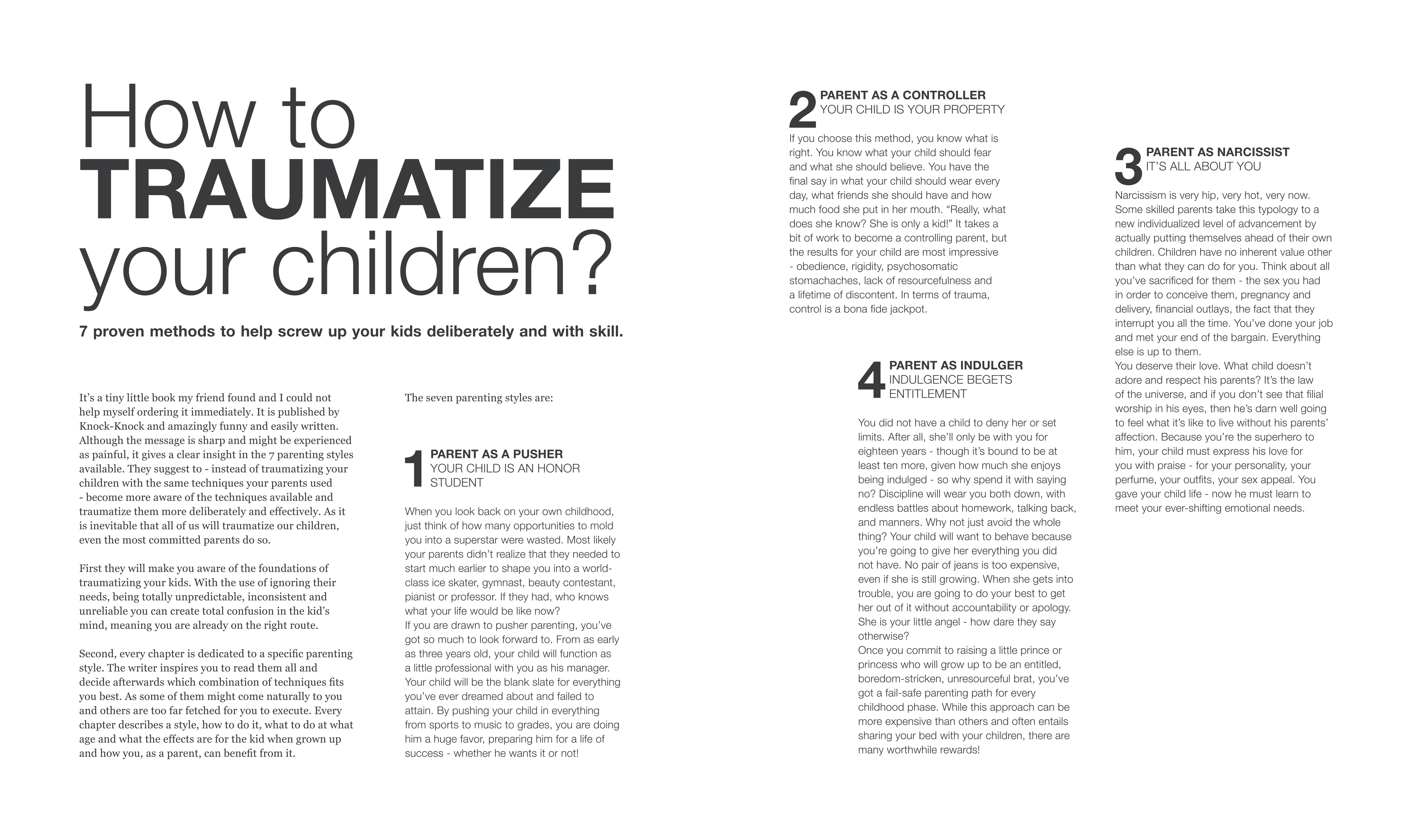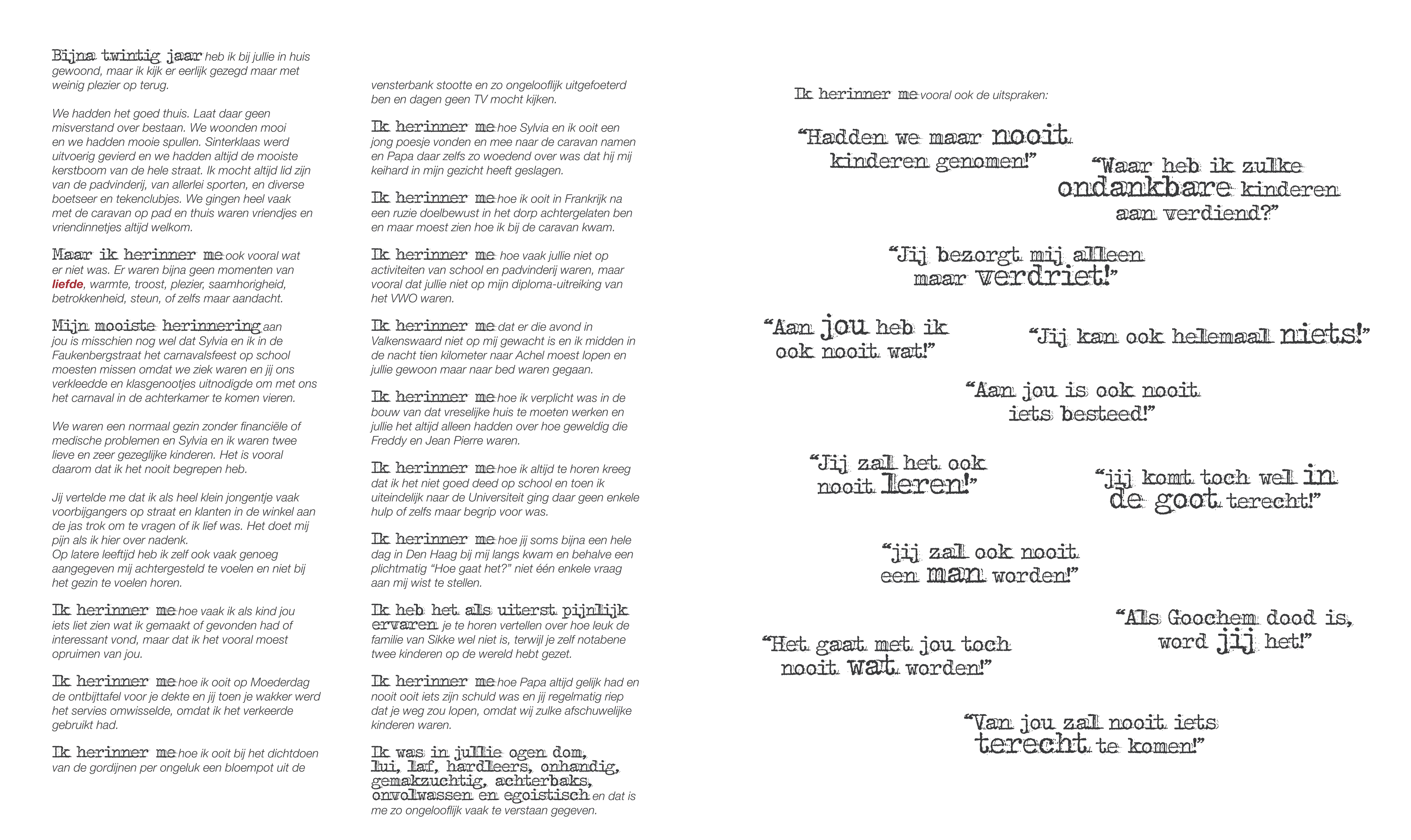 nine additional letters. Some letters are Dutch, some are English. It turned out that translations of the letters did not work well with such personal stories. At the same time, I asked people around me – mostly over 35 years old – what their advice would be to ‘soon-to-be- parents.