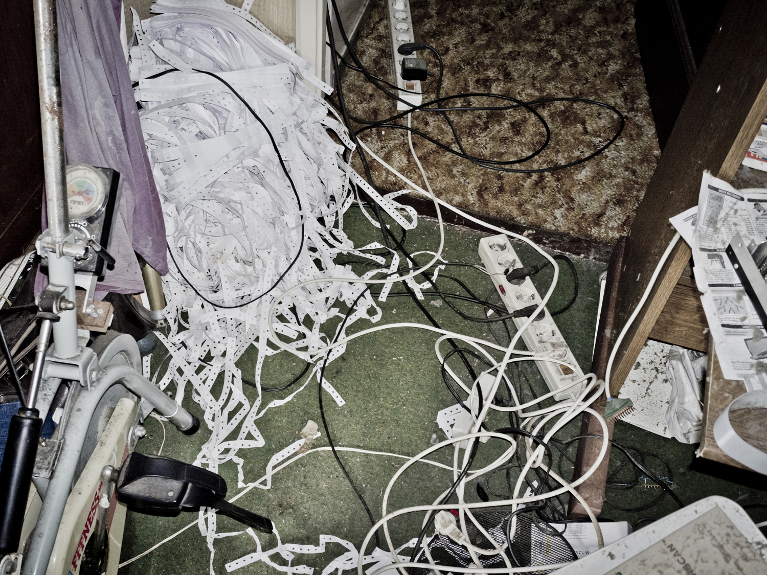 This is how we found his house after he had been lying dead for approximately 3 days. As a photographer, I had to photograph his house. Also because putting a camera between reality and my eyes, is a way for me to create distance between my emotions and the matter I am photographing. So afterwards, while looking at the pictures, I could slowly digest the painful issue.